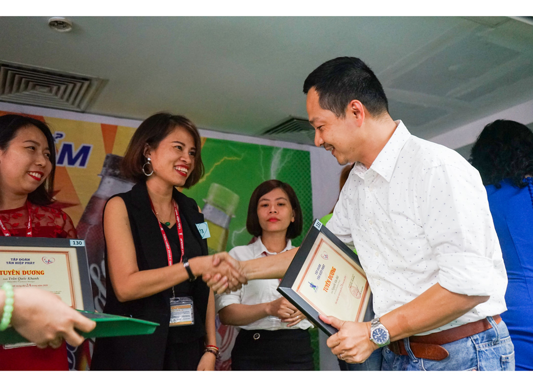 Chiều 26/04/2019, buổi lễ Tuyên dương Nhân viên xuất sắc năm 2018 đã diễn ra tại hội trường tòa nhà văn phòng Tân Hiệp Phát, Bình Dương. Buổi lễ có sự tham dự của Tổng Giám đốc Trần Quí Thanh, hai Phó Tổng Giám đốc Trần Uyên Phương, Trần Ngọc Bích, các Giám đốc khối và hơn 1000 nhân viên đạt thành tích xuất sắc trong năm 2018.